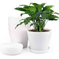 Plastard Plant Pots 10 Pieces 16 Cm Diameter With Plastic Saucer White Round Plant Pot Weatherproof Planter Large Flower Pots Amazon De Garden